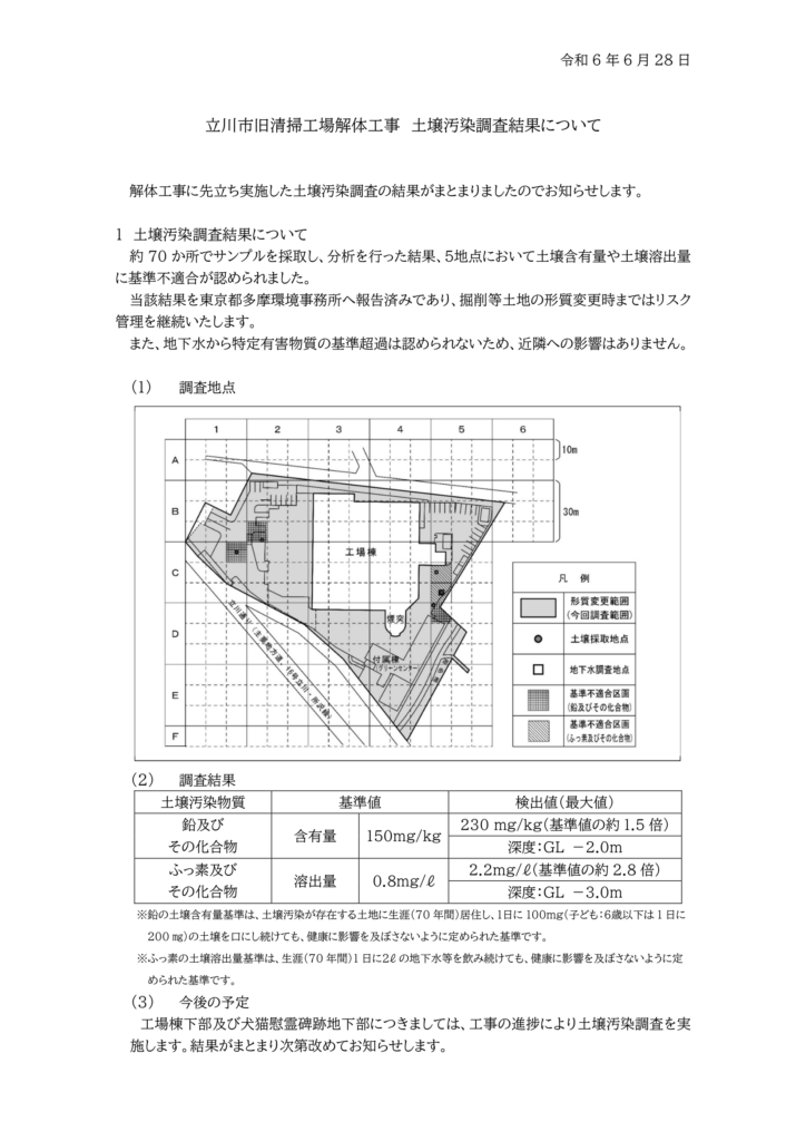 土壌汚染調査の結果報告について