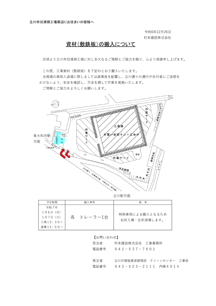 資材(敷鉄板)搬入について