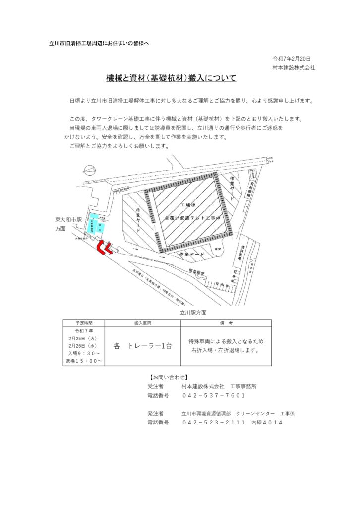 工事機械の搬入について
