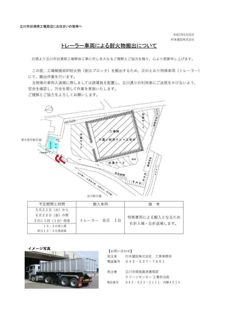 全覆い仮設テントの総点検に伴う道路規制のお知らせ