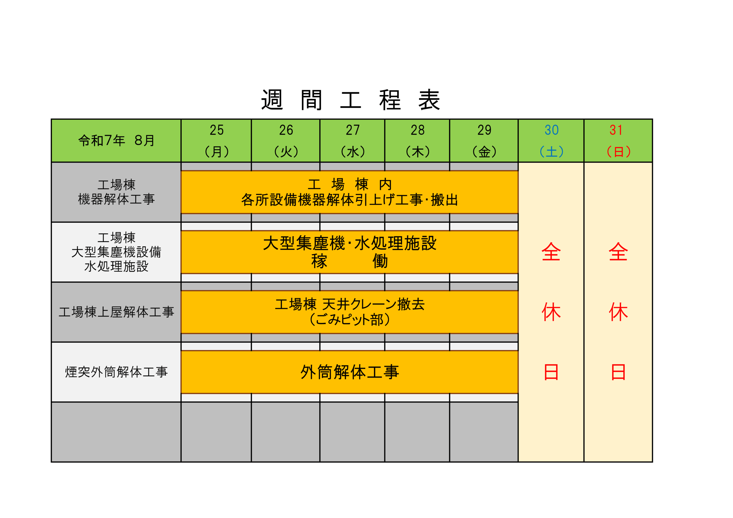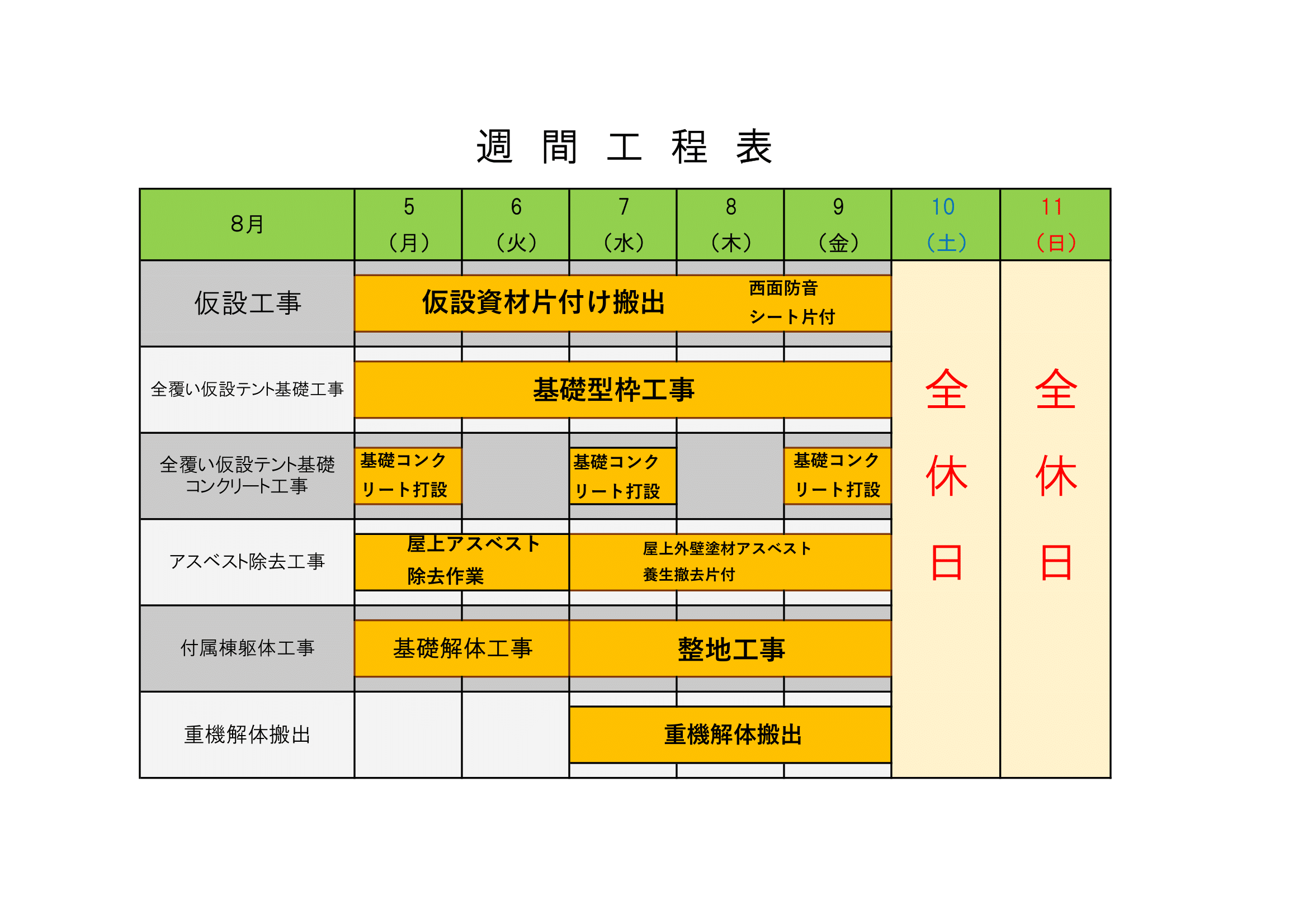 週間工程表