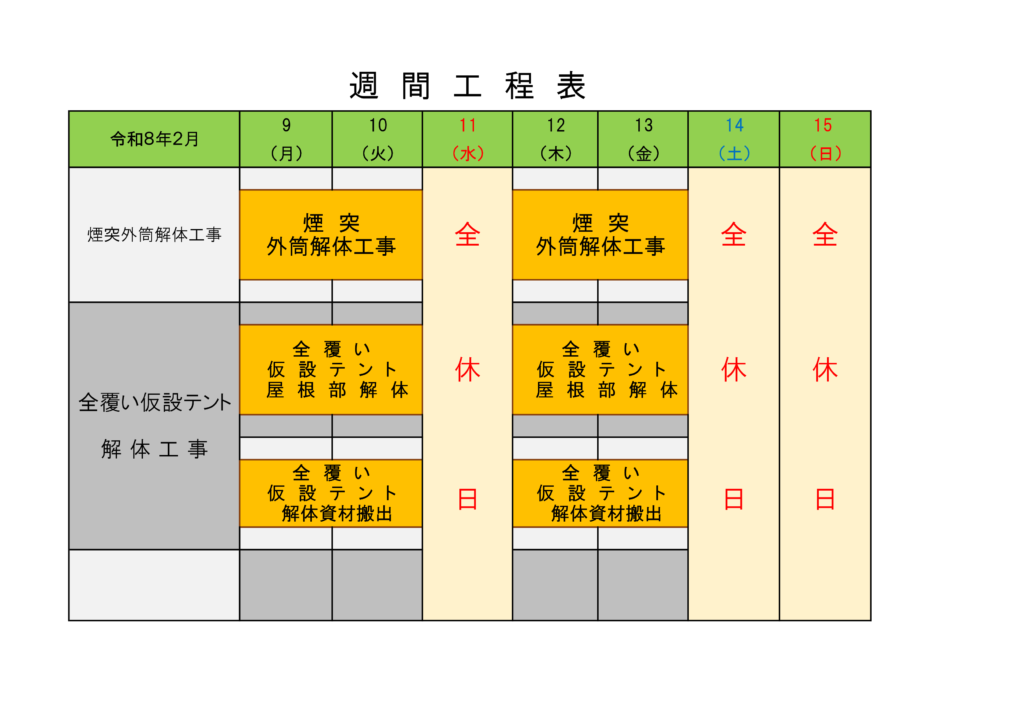 2026年2月2日~2026年2月8日週間工程表