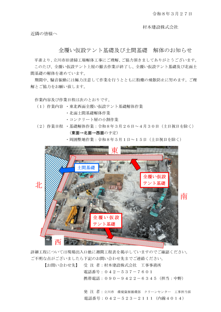 全覆い仮設テント基礎及び土間基礎解体のお知らせ